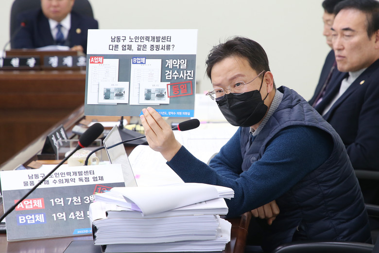 [남동구 세계타임즈=심하린 기자] 남동구 노인인력개발센터가 특정 업체에게 물품구매 수의계약을 몰아줬다는 의혹이 21일 남동구의회 제2차 정례회 사회도시위원회 행정사무감사에서 제기되었다.
