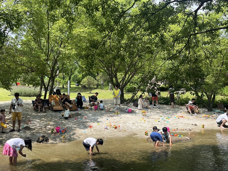 이번 행사는 무더운 여름철을 맞아 개울길광장을 아이들의 눈높이에 맞춘 자연친화형 놀이공간으로 새롭게 구성했으며, 놀거리·즐길거리·볼거리가 어우러진 정원 속 생태놀이터로 재탄생했다는 점에서 큰 의미를 지닌다.