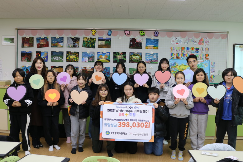 이번 수익금은 일전(10월 26일)에 진행된 광명광덕초 온배움놀이터 어울림한마당 축제의 나눔장터에서 수익금을 자율로 모금하는 과정에서 모인 성금이다. 어울림한마당 축제는 광명광덕초 학생들이 1년동안 자율과제(경기도교육청의 학교여건을 반영한 맞춤형 교육프로그램)를 실천하며 배운 내용들과 주제, 자신들의 역량을 발휘하는 프로그램이다.