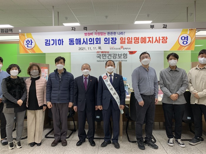 이날 김기하 동해시의회 의장은 하루 동안 지사장과 같은 업무를 소화하며건강보험관련 시민들의 불편사항에 대해 살피고 민원실을 방문한 민원인과 코로나19 지원업무 등에 최선을 다하고 있는 직원들과도 소통하는 시간을 가졌다.