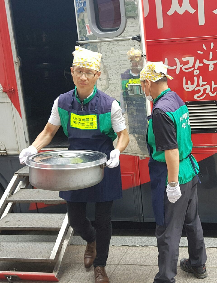 [세계타임즈 심귀영 기자]서울시 노숙인, 동대문 쪽방촌 소외계층, 독거노인 등 대상으로 따뜻한 밥과 반찬을 배식하고 설거지와 청소 등 봉사활동을 펼쳤다.