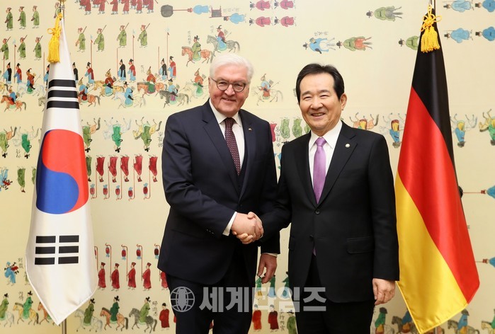 [세계타임즈 이채봉 기자]정세균 국회의장은 2월 8일(목) 오후 국회 접견실에서 평창동계올림픽을 맞아 한국을 공식 방문한 프랑크-발터 슈타인마이어(Dr. Frank-Walter Steinmeier) 독일 대통령을 만나 양국 현안 및 경제협력 증진방안에 대해 의견을 나눴다.
