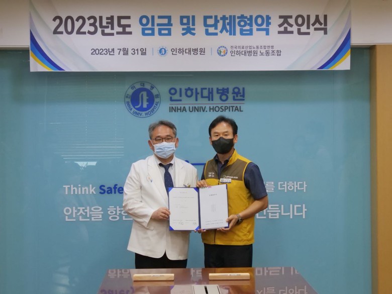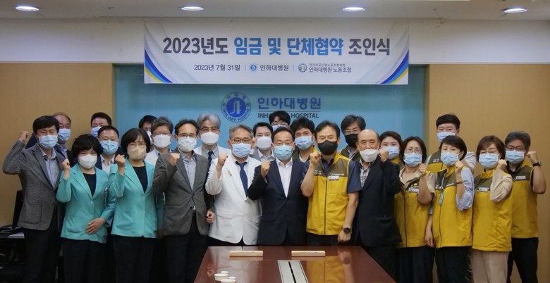 앞서 인하대학교 병원 노동조합은 27, 28일 조합원 찬반투표를 통해 잠정합의안을 재적조합원 94.5% 투표, 90.7%의 압도적인 찬성율로 통과시켜 7월 31일 임단협 조인식을 개최하였다.