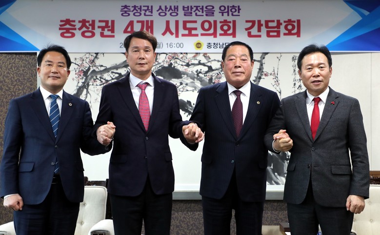 충북도의회 황영호 의장을 비롯한 조길연 충남도의회 의장, 이상래 대전시의회 의장, 상병헌 세종시의회 의장은 9일 충남도의회에서 간담회를 열고 2027 충청권 하계세계대학경기대회 성공적 개최 지원방안과 충청권 특별지방자치단체(메가시티) 구축 협력 방안에 대해 논의했다.