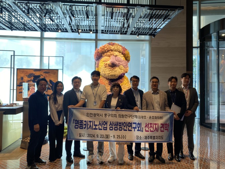 [중구 세계타임즈=심하린 기자] 인천 중구의회 의원연구단체 ‘영종카지노산업 상생방안연구회(대표의원 김광호, 의원 윤효화)’는 지난 23일부터 25일까지 영종카지노산업과 지역발전 연계 방안을 모색하기 위해 국내 선진도시를 찾아 활발한 연구활동을 펼쳤다.