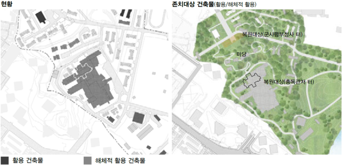 ▲ 용산공원 국제공모 당선 조성계획안 중 기존건축물 활용전략