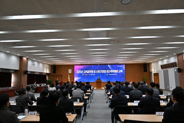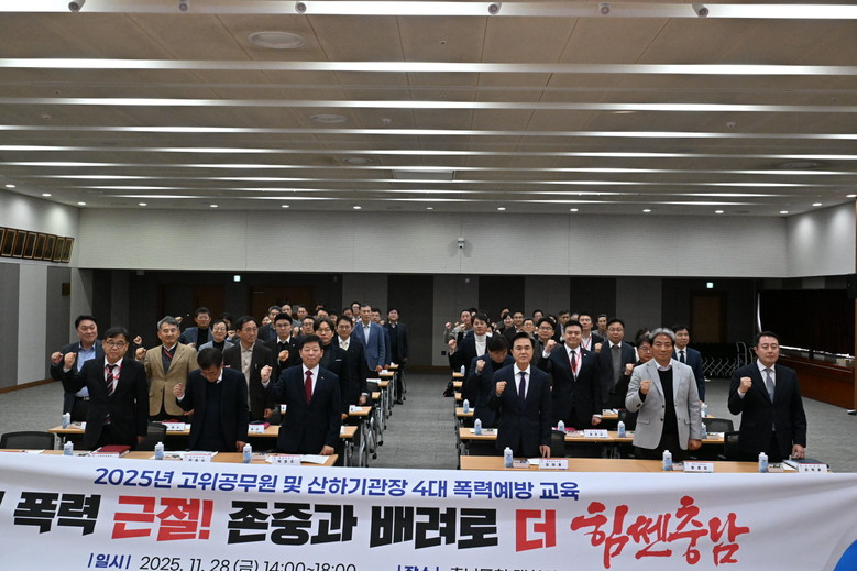 건강한 공직문화를 정착시키고 폭력을 근본적으로 예방하기 위한 이번 교육에는 김태흠 지사와 실·국·본부장 등 고위직 공무원, 산하 기관장 등 60여 명이 참석했다.