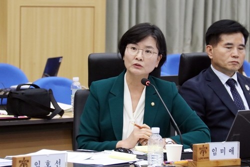 국회 농림축산식품해양수산위원회 소속 더불어민주당 임미애 의원이 16일 정부대전청사 대회의실에서 열린 산림청 국정감사에서 예천지역 산사태 처리 문제점에 대해 질의하고 있다. 2024.10.16