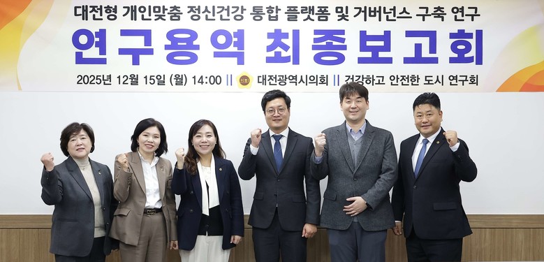 [대전 세계타임즈=이채봉 기자] 대전시의회 ‘건강하고 안전한 도시연구회(회장 김민숙 의원)’는 15일 시의회 공감실에서 ‘대전형 개인맞춤 정신건강 통합 플랫폼 및 거버넌스 구축’ 연구 용역 최종 보고회를 개최했다.