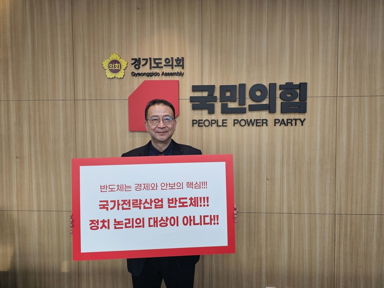 또한, “우리나라 반도체 산업의 경쟁력 제고와 미래 먹거리 마련을 위해 경기도와 용인시가 한마음 한뜻으로 총력을 기울여왔다”며 “더 이상 정치 논리에 나라의 미래산업이 흔들리지 않도록 경기도의회 국민의힘이 앞장서 용인 반도체 프로젝트를 지켜내겠다”고 전했다.