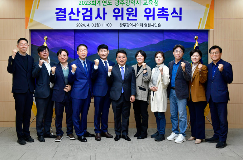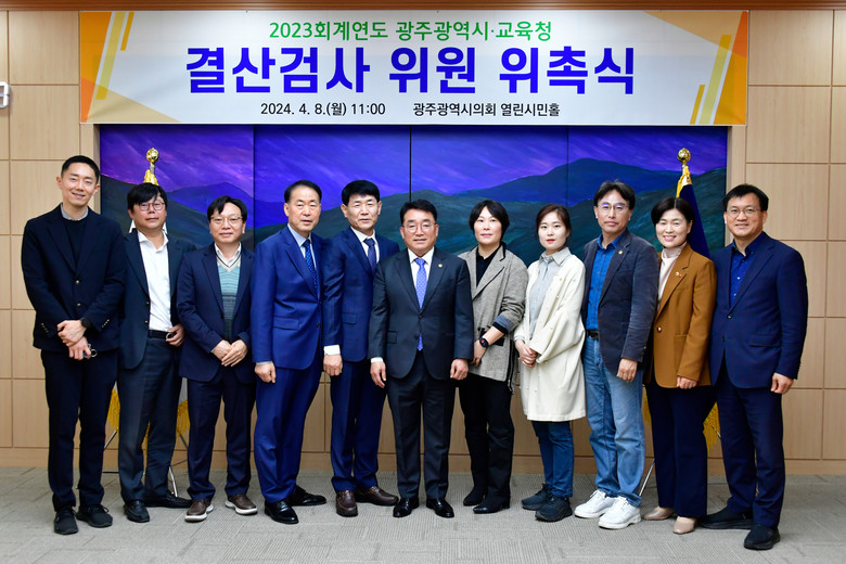 [광주 세계타임즈=손권일 기자] 광주광역시의회(의장 정무창)는 4월 8일 시의회 열린시민홀에서 광주시와 시교육청에 대한 2023회계연도 결산검사위원 위촉식을 개최했다.