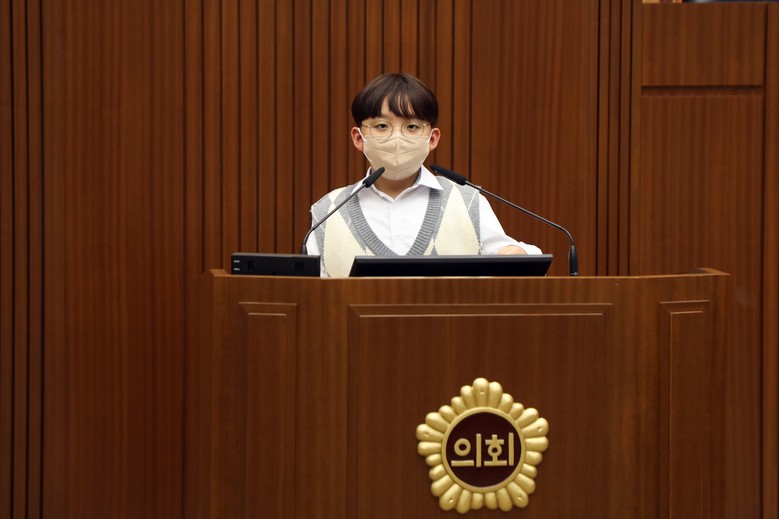 또한, 보람초 5학년 노하율 학생은 2분 발언을 통해 어린이의 시각에서 본 보행 안전 문제와 학교급식 개선, 공중도덕 지키기에 대한 의견을 발표했다.