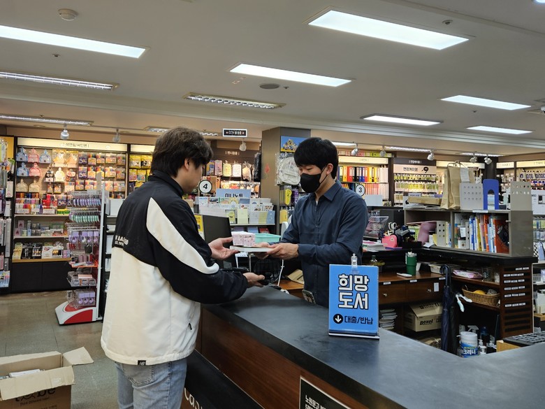 | ▲ 동네서점 희망도서 바로대출 서비스를 이용하는 모습 |