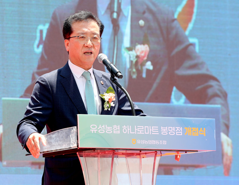 조원휘 부의장은 축사를 통해 “인근 지역 주민 편의성 향상과 지역 농축산물 판매 거점 역할을 하게 될 유성농협 하나로마트 봉명점의 힘찬 출발을 축하한다”며, “많은 소비자가 애용하는 마트로 거듭나 지역경제 활성화에 이바지할 수 있도록 번창하기를 바란다”고 성원했다.