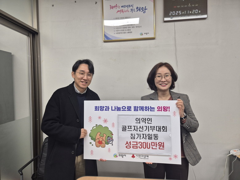 [세계타임즈=의왕시 송민수 기자] 의왕시(시장 김성제)는 최근 포일동에 위치한 ㈜슈어어시스트(대표 이대용)에서 후원금 300만원을 기부했다고 밝혔다.