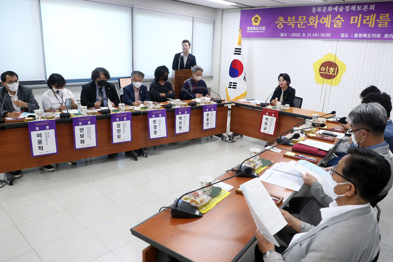 [충북 세계타임즈=이현진 기자] 충북도의회 행정문화위원회(위원장 노금식)는 제403회 정례회 기간 중인 9월 21일(수) 14시, 충북도의회 회의실에서 ‘충청북도 문화예술 정책토론회’를 개최해 도민과 전문가의 의견을 수렴하는 시간을 가졌다.