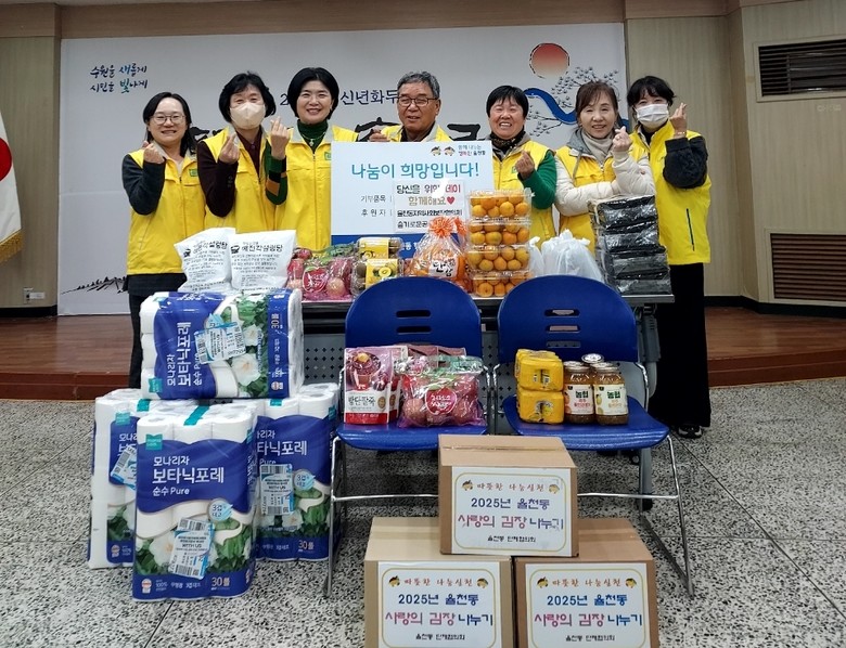 전달된 물품은 율천동 주민들의 자발적 기부로 운영되고 있는 3,000원의 희망기금으로 사전 조사한 과일, 생필품과 슬기로운 공유냉장고 6호점에서 지원받은 반찬 등으로 마련되었다.