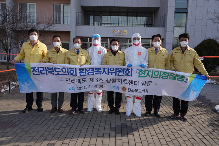이어서 위원들은 완주군 이서면 소재 전라북도 제3호 생활치료센터를 찾아 업무보고를 직접 현장에서 청취하며 센터내 주요시설을 점검하였고, 특히 최일선에서 고군분투하고 있는 의료진 및 방역종사자들의 애로사항을 청취하고 격려하는 시간을 가졌다.