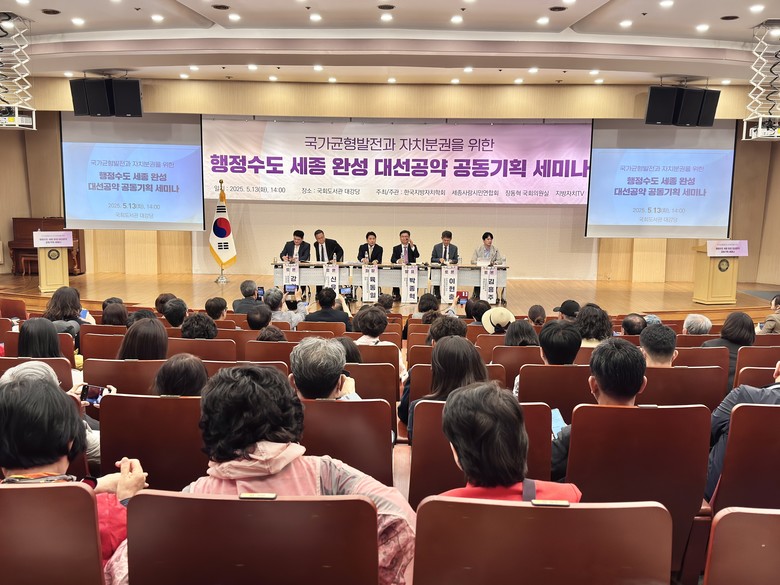 한국지방자치학회, 세종사랑시민연합회, 장동혁 국회의원실, 지방자치TV는 13일 오후 2시, 국회도서관 대강당에서 ‘국가균형발전과 자치분권을 위한 행정수도 세종 완성 대선공약 공동기획 세미나’를 개최했다.