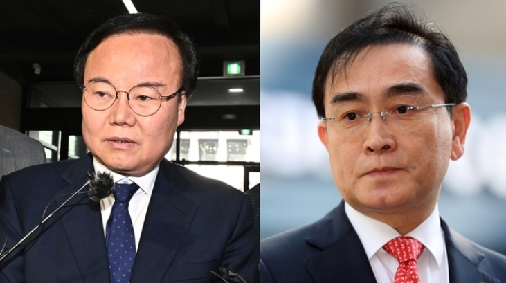 ▲김재원 국민의힘 최고위원(왼쪽)과 태영호 최고위원(오른쪽)