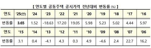2005년 공동주택 공시제도를 도입한 이래 지난해까지 연평균 상승률인 4.4%보다는 낮은 수치다.