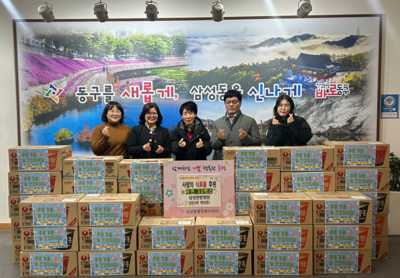 이어 12일에는 삼성한방병원(원장 변상준)이 겨울철 식료품 지원을 위해 라면 50박스를 후원하며 이웃사랑 실천에 동참했다. 변상준 원장은 “지역사회와 함께 따뜻한 연말을 보내고자 나눔에 참여하게 됐다”며 지속적인 사회공헌 의지를 밝혔다.