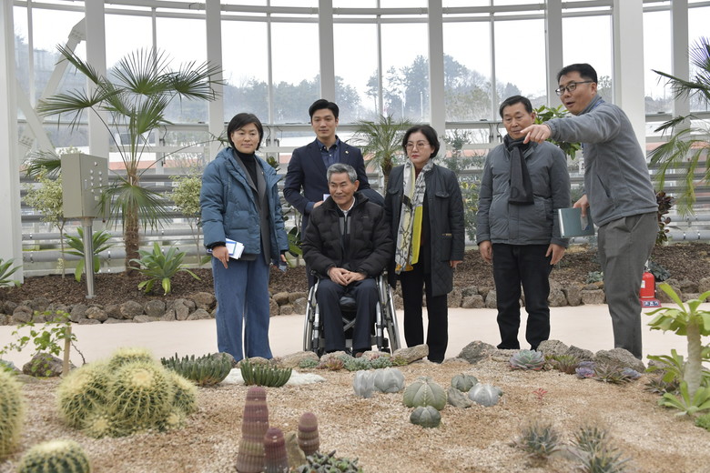 위원들은 지난 행정사무감사 시 지적했던 사항들의 조치 결과를 점검하고, 수목원 조성 현황에 대해 보고받은 후 전시온실과 한국정원을 비롯한 수 목원 시설 정비 현황을 확인하고 향후 계획 및 활용방안에 대해 논의하는 시간을 가졌다.