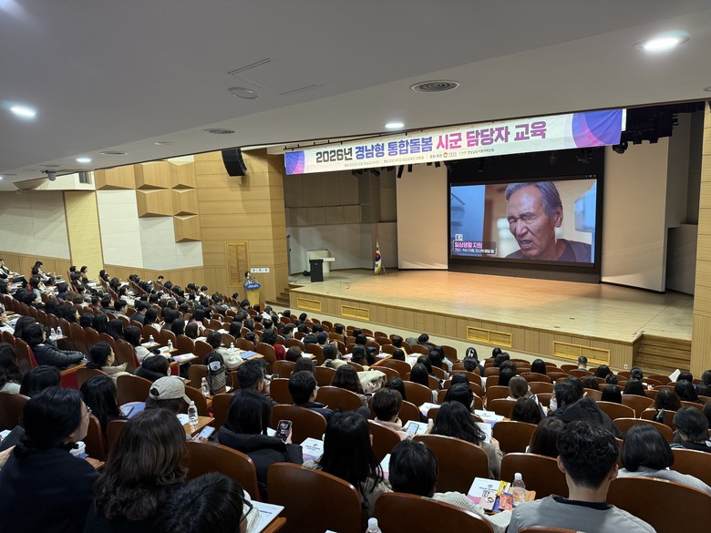 이번 교육에는 도내 시군과 읍면동에서 통합돌봄 업무를 수행하는 공무원 450여명이 참석해, 2026년 경남형 통합돌봄 사업 운영 지침과 읍면동 중심 실행체계에 대한 이해를 높이는 시간을 가졌다.