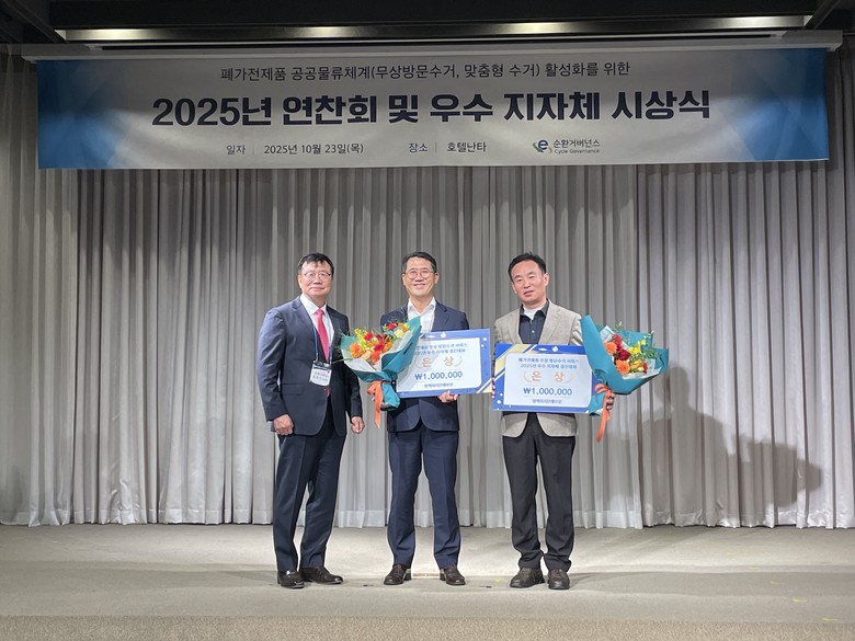 이번 대회는 기후에너지환경부가 주최하고 이순환거버넌스가 주관한 것으로, 폐가전 무상방문수거 실적과 맞춤수거 서비스 운영, 홍보성과 등을 종합적으로 평가해 우수 지자체를 선정했다.