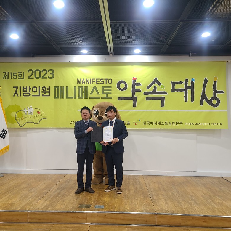 앞서 황 의원은 지난해 한국매니페스토실천본부 주최 ‘2022 지방의원 매니페스토(지방선거부분)약속대상’과 A신문 주최 ‘제7회 인천의정대상 우수조례/매니페스토’ 부문에서 각각 수상한 바 있다.