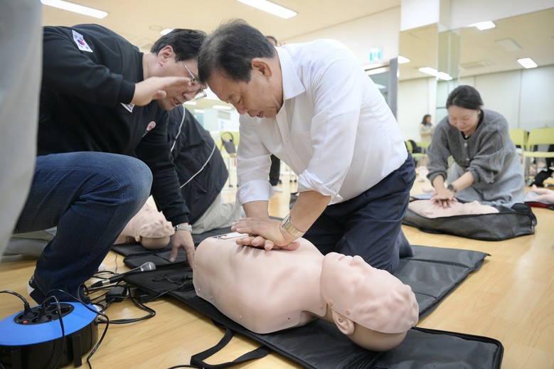 학부모들은 교육용 인형을 활용해 직접 심폐소생술을 체험하며 실제 상황에서 침착하게 대응하는 법을 익혔다.