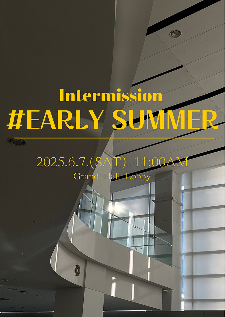 ▸ 6월 7일(토) 오전 11시, 대구콘서트하우스 그랜드홀 로비 [세계타임즈=대구 한윤석 기자] 대구문화예술진흥원 대구콘서트하우스(관장 박창근)는 오는 6월 7일(토) 오전 11시, 대구콘서트하우스 그랜드홀 로비에서 클래식 오아시스 ‘인터미션 #초여름’을 개최한다.