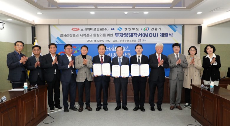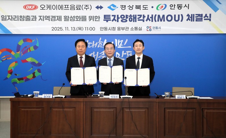 이남억 경상북도 공항투자본부장은 “OKF음료㈜의 이번 투자는 ‘청정수도 안동’의 이미지와 세계적 브랜드의 기술력이 결합한 상징적인 사례”라며, “경상북도는 앞으로도 식음료, 바이오, 농식품 등 청정 이미지를 기반으로 한 고부가가치 산업을 적극 유치해 지역경제의 지속 가능한 성장 기반을 다져 나가겠다”고 밝혔다.