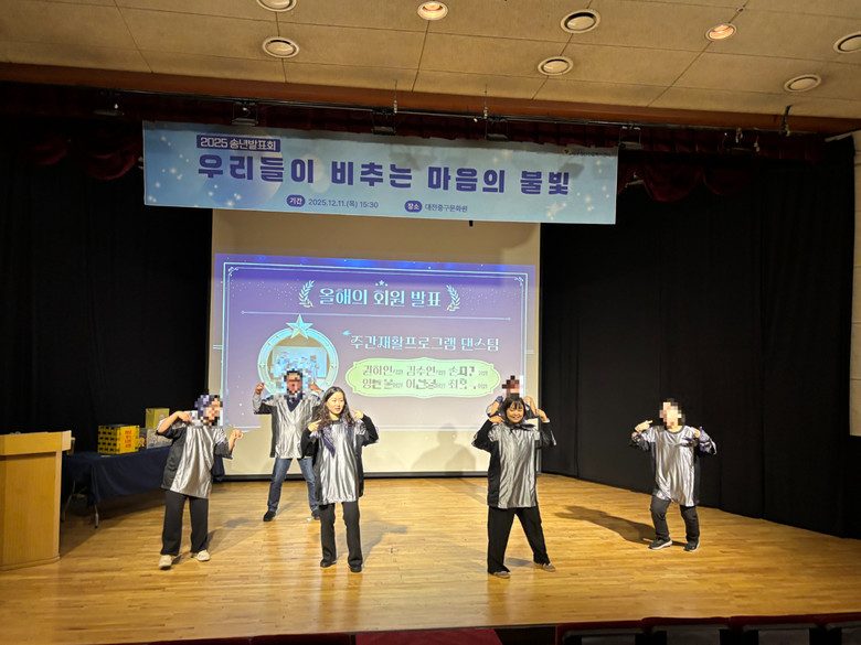 [서구 세계타임즈=이채봉 기자] 대전 서구정신건강복지센터(센터장 신상호)는 중증정신질환관리사업의 올 한 해 성과를 돌아보고 회원들의 회복과 성장을 함께 축하하는 송년 발표회 ‘우리들이 비추는 마음의 불빛’을 개최했다고 12일 전했다.