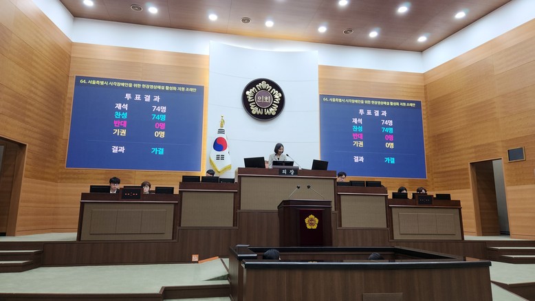 - 시각장애인 현장영상해설의 체계적인 지원과 효율적인 활성화를 위한 서울시 차원에서 보장하고자 한 조례로, 제332회 임시회 제5차 본회의에서 재석의원 만장일치 가결