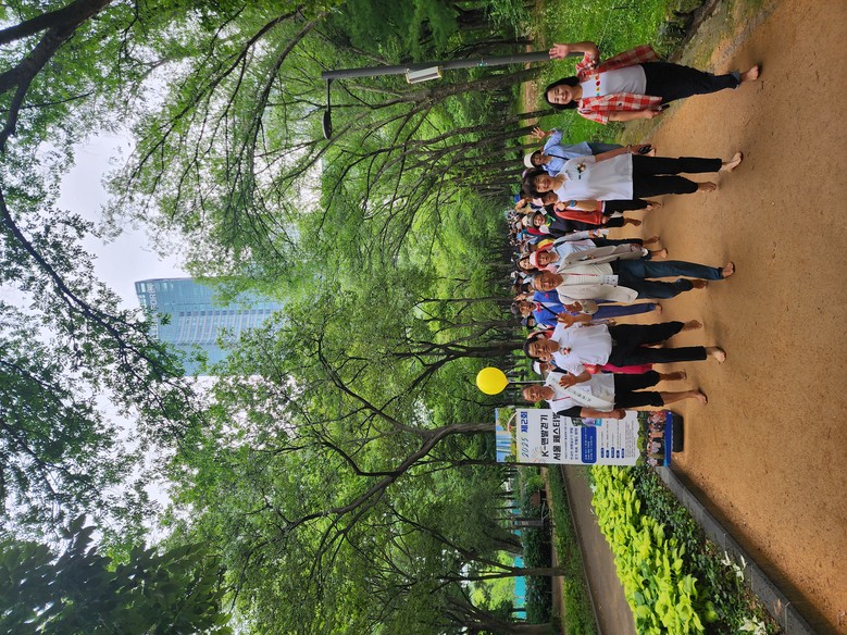 | ▲ 지난 6월 28일 서울숲에서 열린 ‘제2회 K-맨발걷기 서울 페스티벌’에 참석한 김용호 서울시의원(맨 앞줄 왼쪽 다섯 번째)이 단체 기념촬영을 하고 있다. |