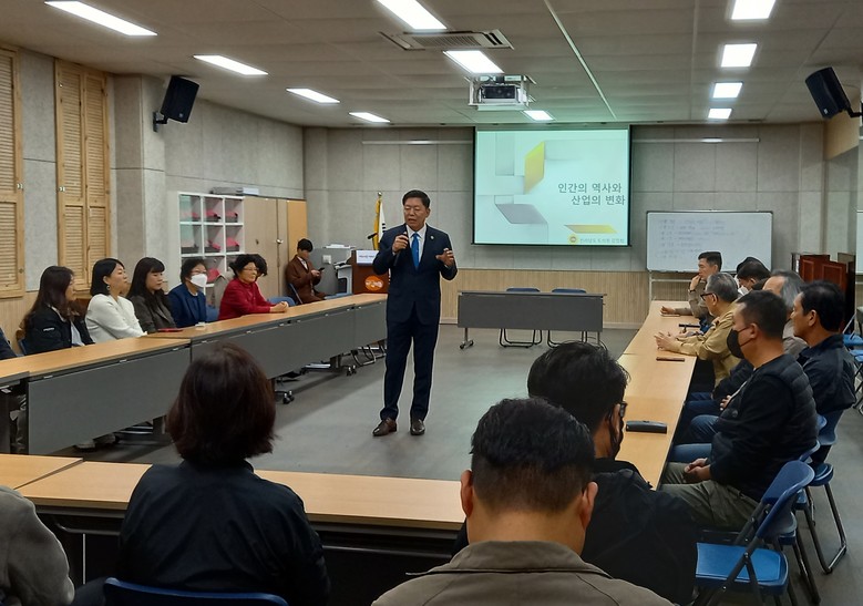 [전남 세계타임즈=우덕현 기자] 전라남도의회 김정희 의원(더불어민주당ㆍ순천3)이 지난 11월 9일, 순천시 중앙동 소재 천태만상 창조센터에서 산업의 변화와 순천 원도심 활성화 방안을 주제로 특강을 했다.