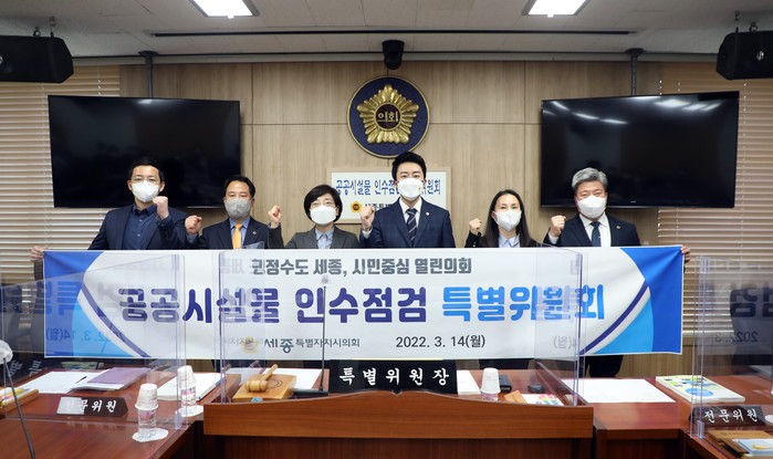 [세종=세계타임즈 이채봉 기자] 세종특별자치시의회(의장 이태환) 제4기 공공시설물 인수점검 특별위원회(위원장 임채성)는 14일 세종시청 관계 공무원 및 한국토지주택공사(LH) 관계자가 참석한 가운데 마지막 공식 일정인 제4차 회의를 개최했다.