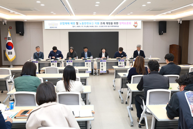 [충북 세계타임즈=이현진 기자] 충북도의회 산업경제위원회(위원장 김꽃임)는 11일 의회 다목적 회의실에서 ‘충청북도 산업재해 예방 및 노동안전보건 지원 조례’ 개정 방향을 모색하기 위한 정책토론회를 개최했다.