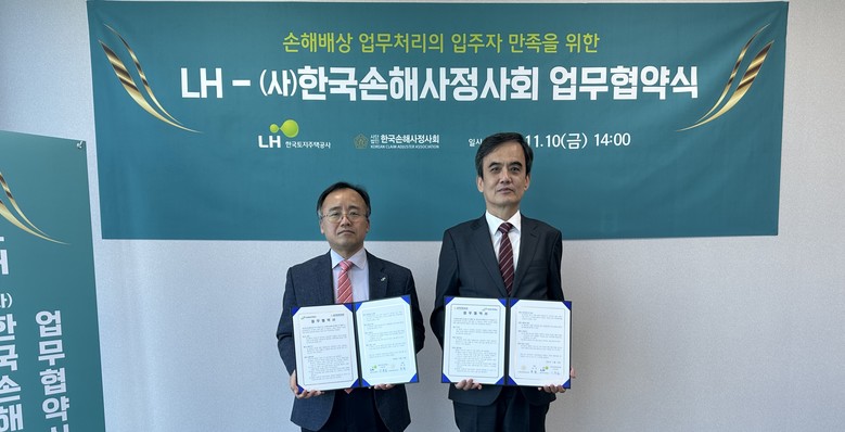 [세계타임즈 = 심귀영 기자] 한국토지주택공사(LH)는 공공임대주택 입주자 피해 배상 업무의 신속성과 공정성을 높이기 위해 10일 (사)한국손해사정사회와 업무협약을 체결한다고 밝혔다.