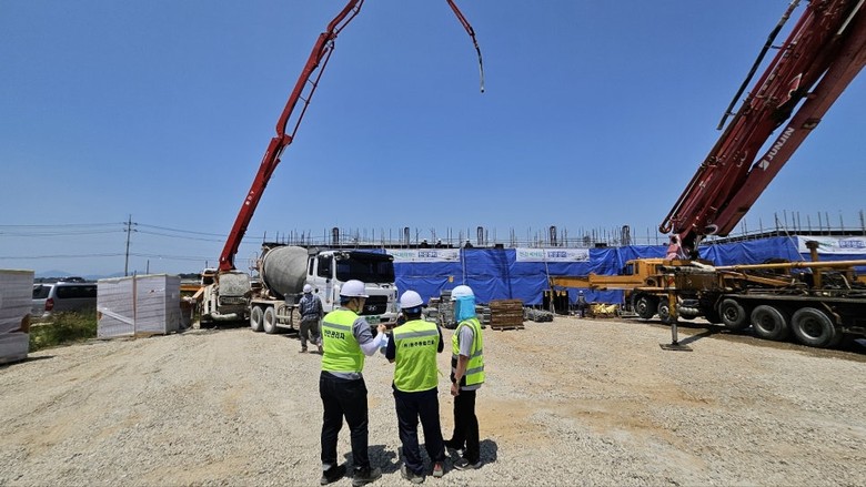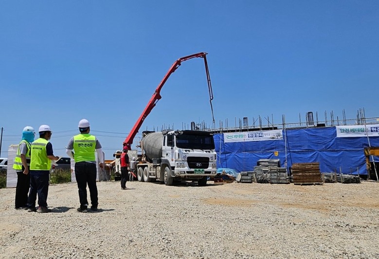 지난주 건축물의 벽체·기둥·슬래브의 철근콘크리트 타설이 완료됐고, 이달 하순까지 설계기준강도 확보를 위해 철저한 품질관리와 함께 양생단계를 진행하고 있다.