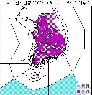 이날 오후 4시를 기해 서울뿐 아니라 전국적으로 폭염특보가 확대·격상됐다.현재 전국 183개 특보구역 중 91%인 167곳에 폭염특보(경보 69곳·주의보 98곳)가 내려진 상태다.강원 동해안과 산지 일부, 경북 북동부, 한라산 등을 제외하면 전국이 폭염 속에 놓인 셈이다.중국 상하이 쪽을 향하는 열대저압부와 북태평양고기압 사이로 고온다습한 남동풍이 불면서 백두대간 서쪽 늦더위를 부추기고 있다.바람이 산을 넘으면서 한층 뜨거워지는 푄 현상 때문에 동풍이 불면 백두대간 서쪽이 덥다.기상청 기후관측지점 97곳 중 절반이 넘는 52곳에서 이날 지역 기상관측 이래 9월 최고기온 신기록이 갈아치워졌다.강원 정선은 기온이 37.1도까지 올랐고, 최고기온이 사람 체온 수준인 36도를 넘어선 지역도 충남 금산과 대전 등 12곳에 달했다.서울은 최고기온이 33.9도로 9월 기온 중 관측 이래 다섯번째로 높았다. 기온 기록은 오후 4시가 기준으로 이후 기온이 오르면 바뀔 수 있다.이번 폭염이 오래가지는 않을 전망이다.기상청은 11일 오후까지 매우 무덥다가, 11일 저녁부터 기온이 낮아지면서 폭염특보가 해제되거나 경보가 주의보로 낮아질 것으로 예상했다.12일에는 열대저압부가 중국 내륙에서 북서진하는 가운데 북태평양고기압이 제주 쪽까지 세력을 확장하면서 고온다습한 공기가 주로 들어오는 지역이 중부지방으로 바뀌겠다.이에 중부지방을 중심으로 전국에 산발적으로 비가 올 전망이다.13일에는 북쪽에서 찬 공기가 들어와 기존 따뜻한 공기와 충돌하면서 경기북부와 강원북부에 비가 오겠다.비가 내리고 북쪽에서 찬 공기가 들어오면서 12~14일 늦더위 기세가 다소 누그러들 전망이다.이후 15~16일 티베트고기압이 재차 세력을 확장해 한반도를 덮으면서 기온이 다시 상승하겠다.