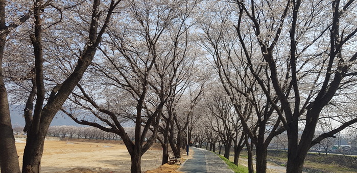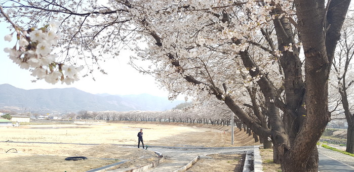 충북 괴산군 청안면 문방천 일대에 활짝 핀 벚꽃이 장관을 이루고 있다.