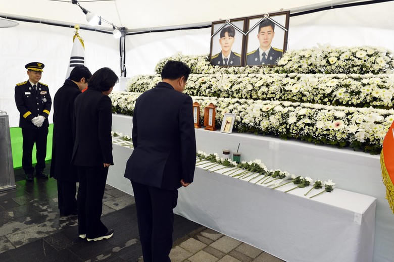 [세종 세계타임즈=이채봉 기자] 세종특별자치시의회(의장 이순열)는 화재 진압 중 순직한 고(故) 김수광 소방장, 고(故) 박수훈 소방교를 추모하기 위해 제87회 임시회 본회의 종료 이후 세종시 정부청사 소방청에 차려진 합동분향소를 찾았다.