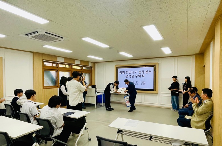 유형진 교장은 “학생들의 꿈을 응원하며 장학금을 전해주신 광명희망나기 운동본부와 함께하는 교회에 깊은 감사를 드린다”며 “이 장학금은 단순한 지원을 넘어 학생들이 자신감을 갖고 미래를 향해 힘차게 도전하는 희망의 씨앗이 될 것”이라고 밝혔다.