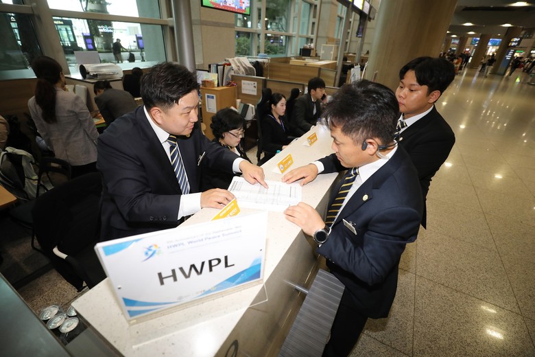 [세계타임즈 = 백진욱 기자] HWPL이 주최하는 9·18 평화만국회의 제9주년 기념식이 오는 18일부터 개최되는 가운데, 17일 오후 인천국제공항에서 HWPL 공항영접부 봉사자들이 인사들의 입국 스케줄을 확인하고 있다.