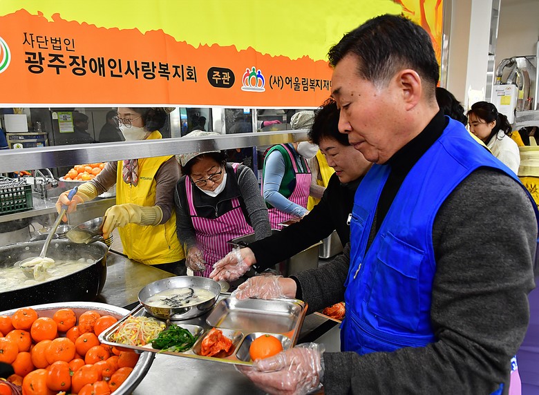 [광주 세계타임즈=손권일 기자] 광주광역시의회 환경복지위원회(위원장 조석호)는 새해를 맞아 5일 광주장애인종합복지관을 방문하여 광주장애인사랑복지회와 함께 장애인 500여 명을 대상으로 떡국 배식 봉사활동을 펼쳤다.