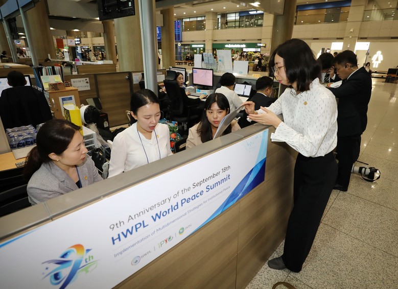 [세계타임즈 = 백진욱 기자] HWPL이 주최하는 9·18 평화만국회의 제9주년 기념식이 오는 18일부터 개최되는 가운데, 17일 오후 인천국제공항에서 HWPL 공항영접부 봉사자들이 인사들의 입국 스케줄을 확인하고 있다.