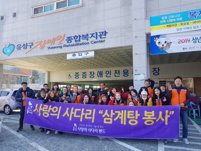 유성구장애인복지관 김영근 관장은 “오늘 사랑의 사다리 밴드에서 삼계탕을 지원해주어서 큰힘과 위안이 된다.”면서 감사함을 전했다.