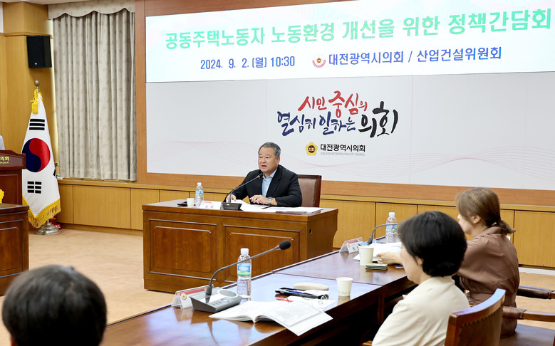 대전시의회 산업건설위원회 주관으로 개최된 이번 간담회는 공동주택노동자들의 노동환경 실태를 파악하고, 개선을 위한 정책 방향을 논의하기 위해 마련됐다.